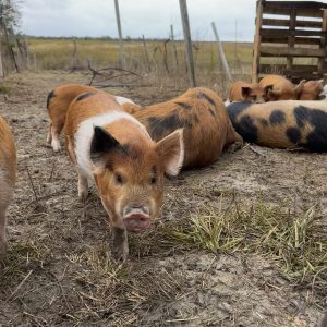 $250.00Born 9/2/24 Unregistered, full blooded KuneKune parents. Mom is our tri-color sow, Luna, with the most beautiful markings and dad was a black and white boar. Still occasionally nursing but mainly eating a non-GMO corn free and soy free feed, with this main diet being free grazing. In the first image – she’s the girl…