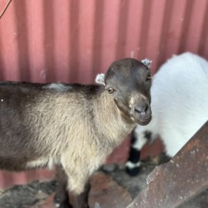 $250.00Nigerian Dwarf Doe Born 2/27/24 Mom is a registered Nigerian dwarf. Dad is unregistered. She is a gentle and curious that is not overly social. She is food motivated. Holistically raised. Free grazes on pasture. Naturally Polled. She has successfully kidded once in February with two doelings. No birthing complication. She lost one in the…