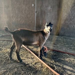 $200.00“Blackberry” is a chocolate colored, naturally polled, unregistered buckling with blue eyes. His genetics are 7/8 Nigerian Dwarf, 1/8 Nubian. Born 3/13/24.