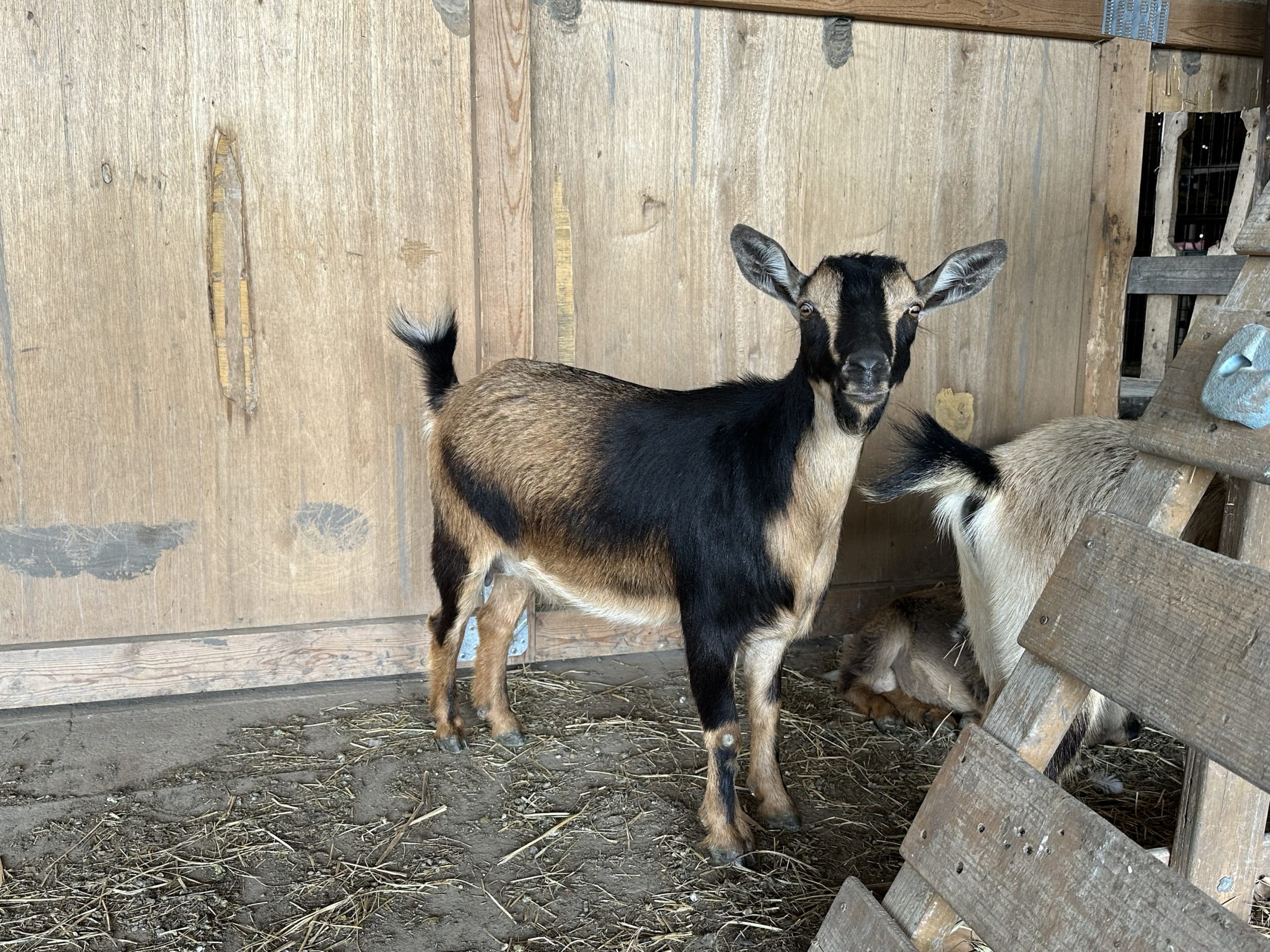 She has successfully kidded once in February with two doelings. No birthing complication. She lost one in the freeze and the other became a bottle baby. No longer in milk, but has a small bag.